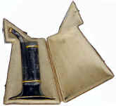 A Bonnafont bugle ear trumpet antique hearing aid with its very rare original leather-covered wood case.