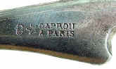 A c. 1850 Paul Dubois (1795-1871) antique obstetrical forceps marked: CAPRON / A PARIS. An unusual feature of this forceps is that the end of each handle can be used as a blunt crotchet and that each handle unscrews to reveal an additional obstetrical instrument. The left handle becomes a sharp hook and the right becomes a perforator. See Hibbard, pp. 63-64, and fig. 5.7.