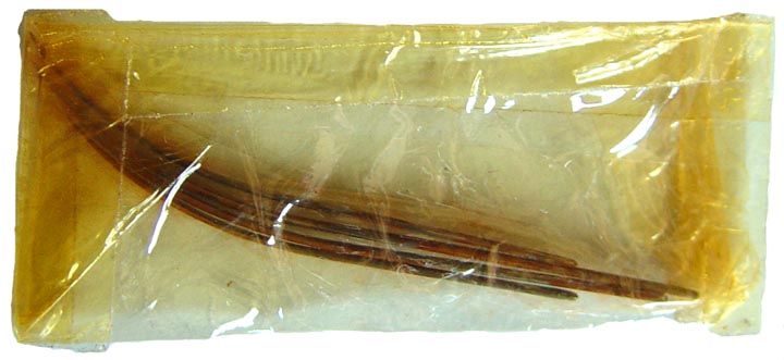 | 66. A superb c. 1860 antique surgical set by John Weiss & Son, No. 62, Strand, and No. 287, Oxford Street, arguably the best instrument maker in London at the time. Note that the Weiss name appears in relief on many of the pressed-horn handles; this feature is found on instruments illustrated in the 1863 Weiss catalogue and in Bennion, Plate I. The selection of saws, knives, trephines, chisels, bone forceps, etc., favor orthopedic and neurologic (brain) surgery. Two capital saws are present...the tenon saw was for arm and lower leg amputations, while the Dr. Butcher's saw, introduced in 1851, was designed for resectioning and hip amputation. The 1863 Weiss catalogue presents a Marshall's Osteotribe, or Rosehead, for Necrosis...and a fine example is found in the set. Also worthy of mention is the trephine's handle with delicately segmented finials. SOLD | |