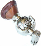 A high quality antique chloroform inhaler made by Collin, Paris. This nickel-plated instrument, known as the Tuffier inhaler, was introduced c. 1905. There are several hand-engraved letterings: H.M. (Hôpital Militaire?), on the middle section, and, on the rotating air valve, O (Ouvrir) and F (Fermer).